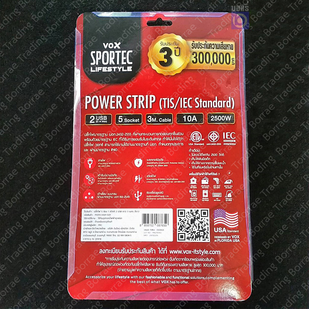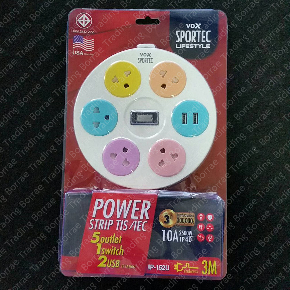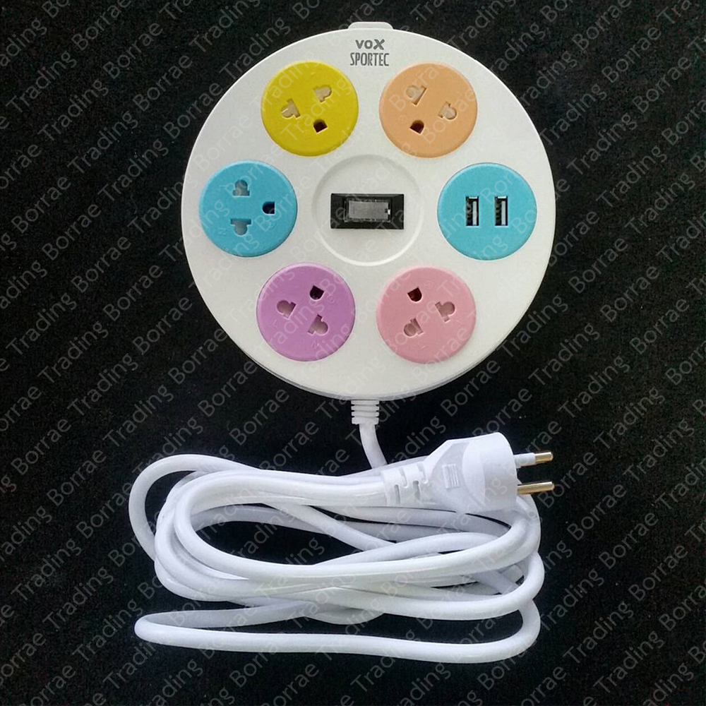 ปลั๊กพ่วงกลม 1 สวิทซ์ 5 ช่อง 2 USB สายยาว 3 เมตร ยี่ห้อ VOX รุ่น P-152U