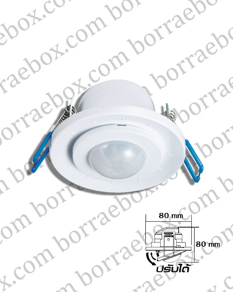 เซนเซอร์จับความเคลื่อนไหว รุ่น 800R แบบฝัง เป็นอุปกรณ์ประหยัดพลังงาน ซึ่งจะเปิดไฟเมื่อมีสิ่งเคลื่อนไหวผ่าน และจะปิดไฟเมื่อมีสิ่งเคลื่อนไหวออกจากพื้นที่คลอบคลุม โดยเซนเซอร์สามารถปรับตั้งเวลาที่จะให้ไฟติดอยู่หลังจากไม่มีสิ่งเคลื่อนไหวในพื้นที่ครอบคลุม จาก 10 วินาที ถึง 10 นาที เซนเซอร์ยังสามารถปรับตั้งการทำงานให้ใช้ได้เฉพาะในเวลากลางคืน หรือเฉพาะในเวลากลางวัน หรือทังกลางวันและกลางคืน สามารถติดตั้งบนเพดานสูง 2.2 – 4 เมตร ระยะรัศมีในการตรวจจับสูงสุด 8 เมตร