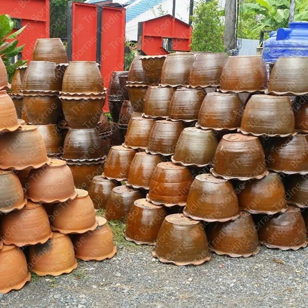 กระถางโค้งเคลือบปากหยัก