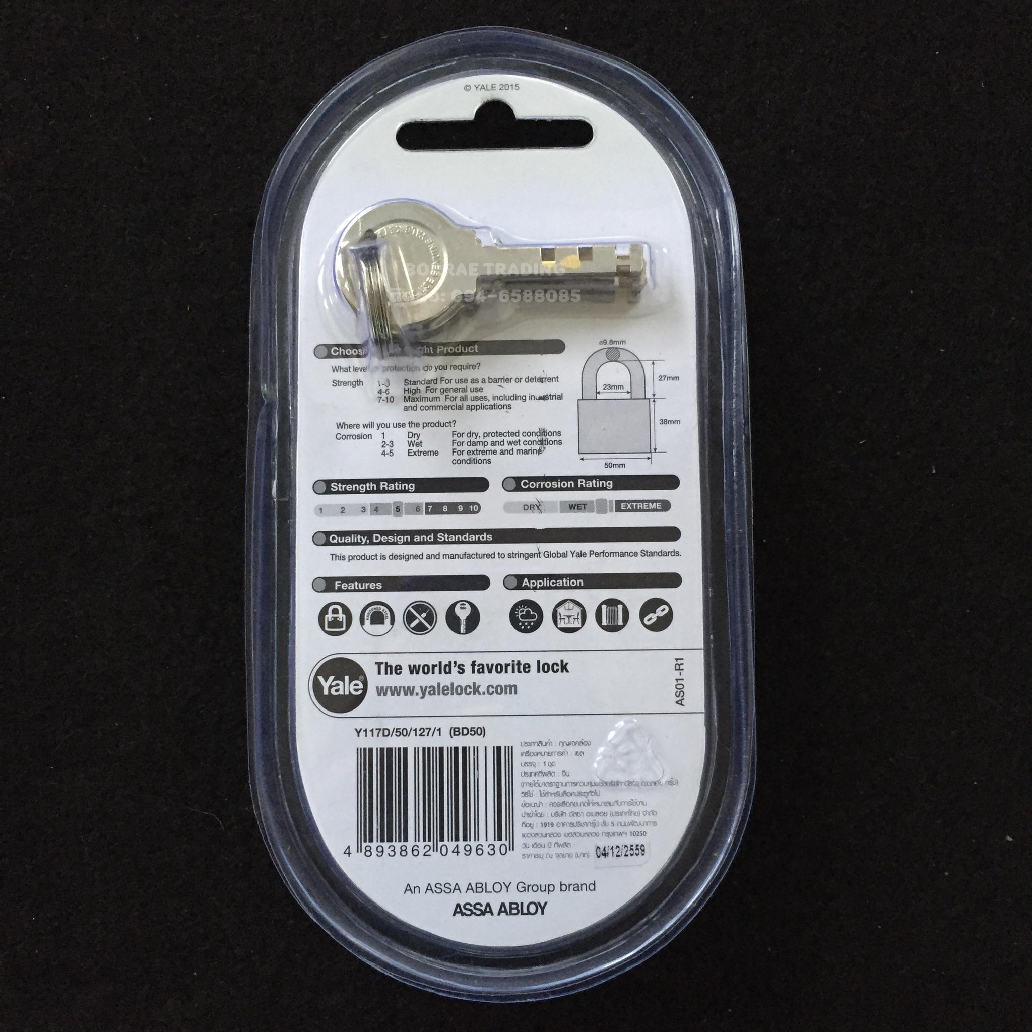 กุญแจล็อคทองเหลืองแท้ ระบบลูกปืน 50 มม. ยี่ห้อ Yale