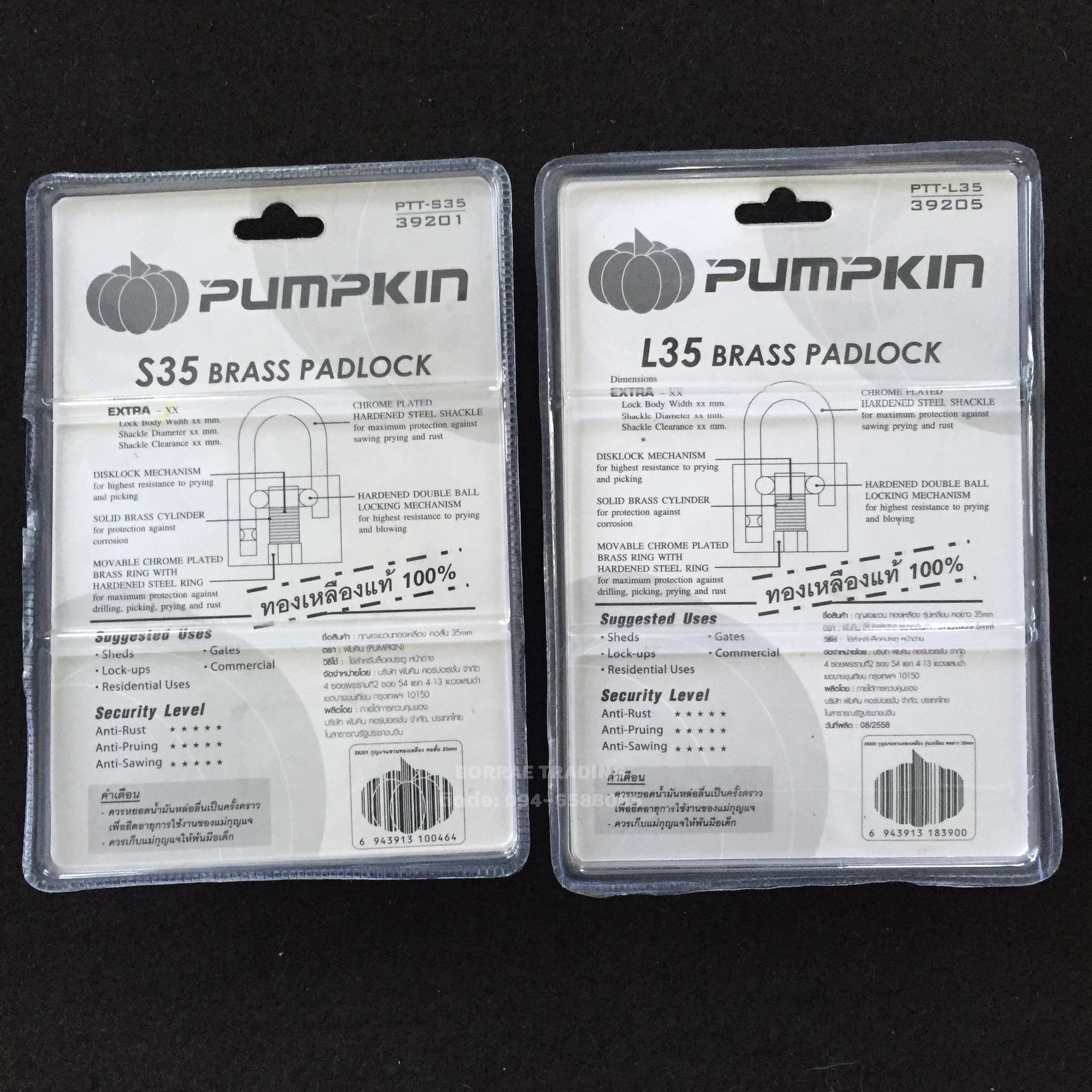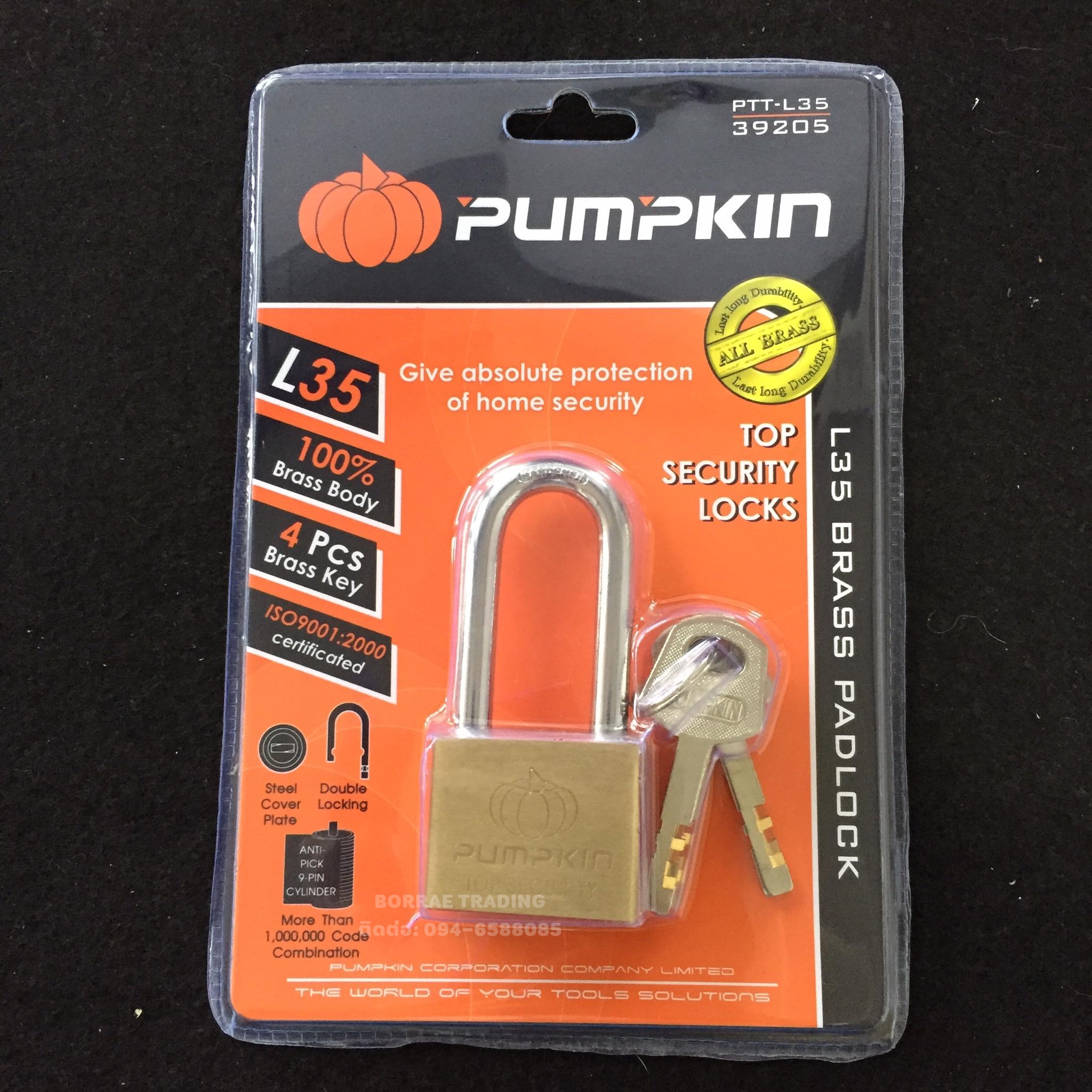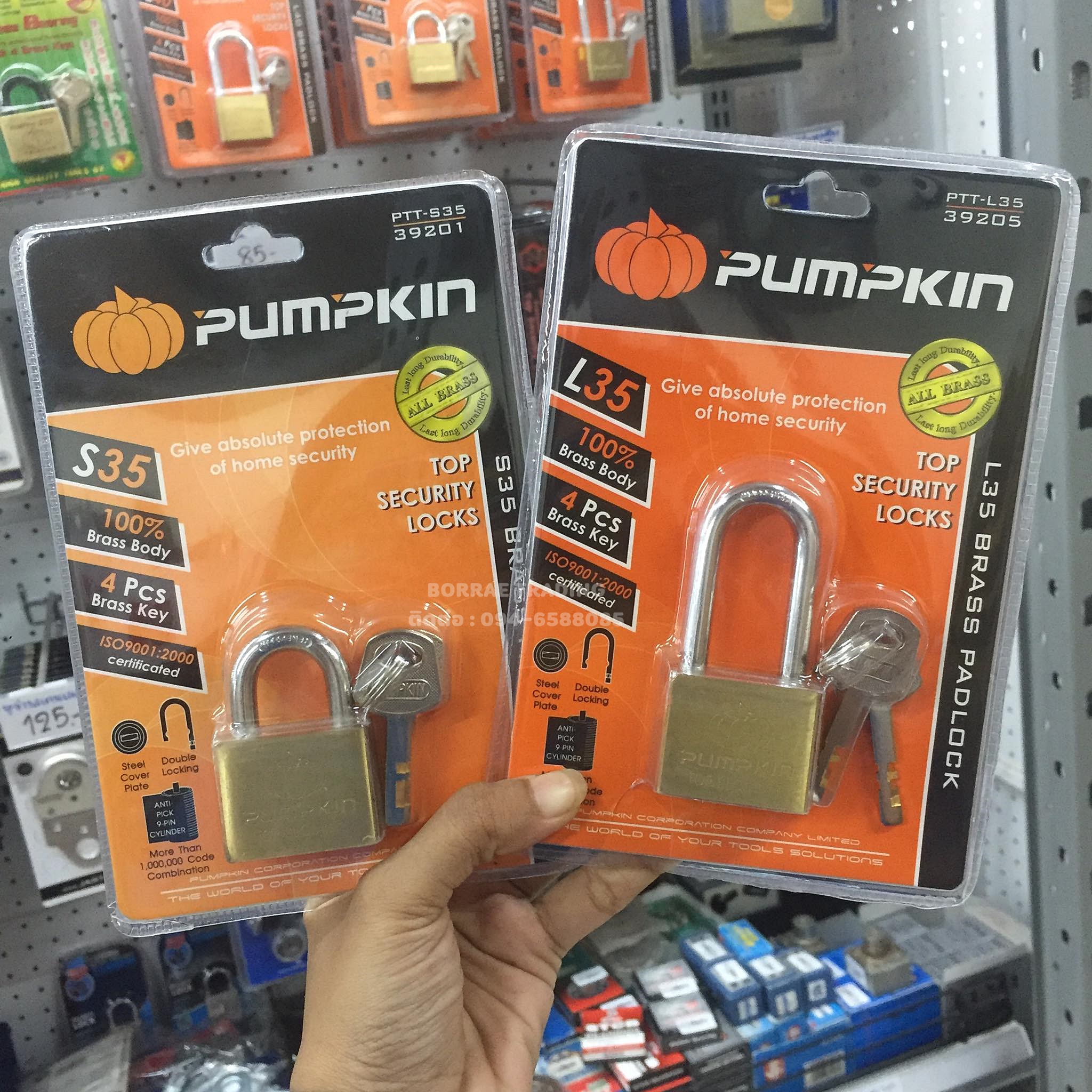 กุญแจล็อคทองเหลืองแท้ ไม่ขึ้นสนิม ระบบลูกปืน 35 มม. ยี่ห้อ Pumpkin