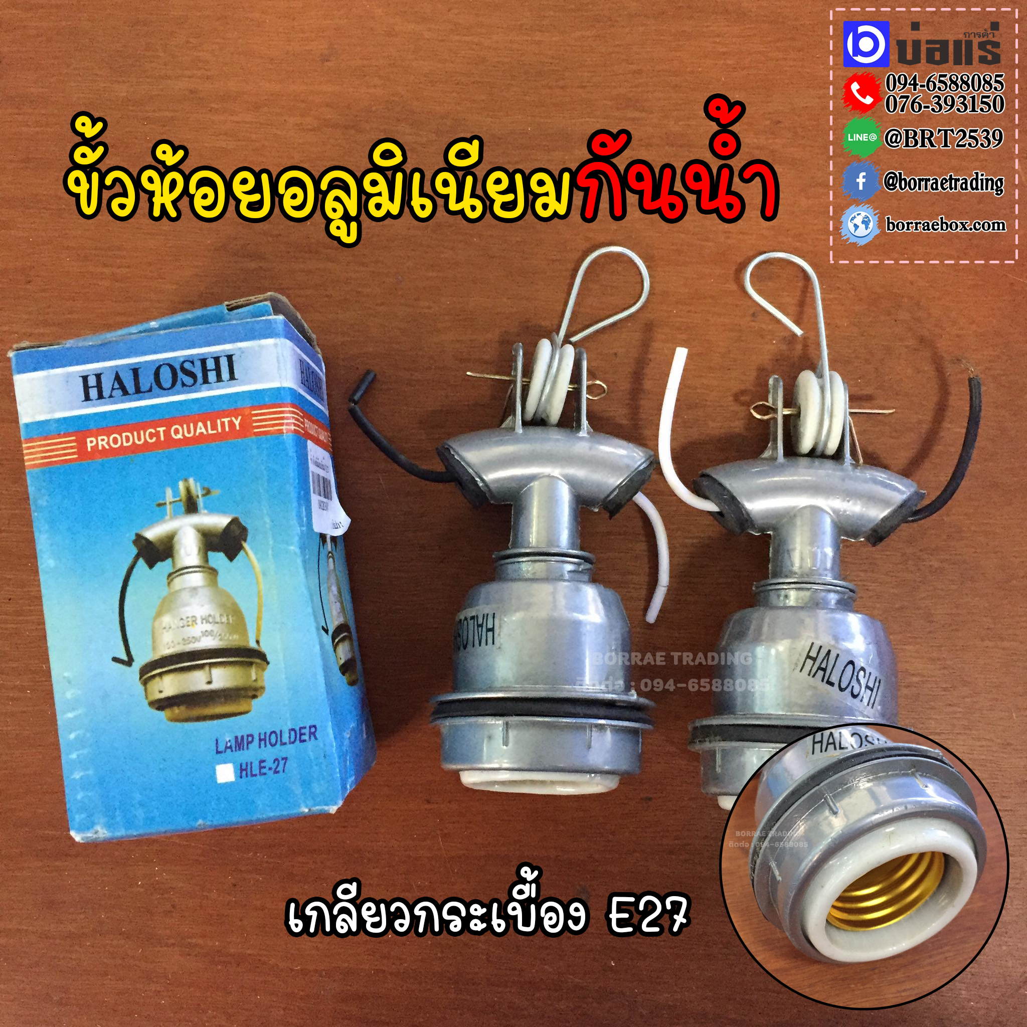 ขั้วห้อยอลูมิเนียมกันน้ำ เกลียวกระเบื้อง E27 HALOSHI