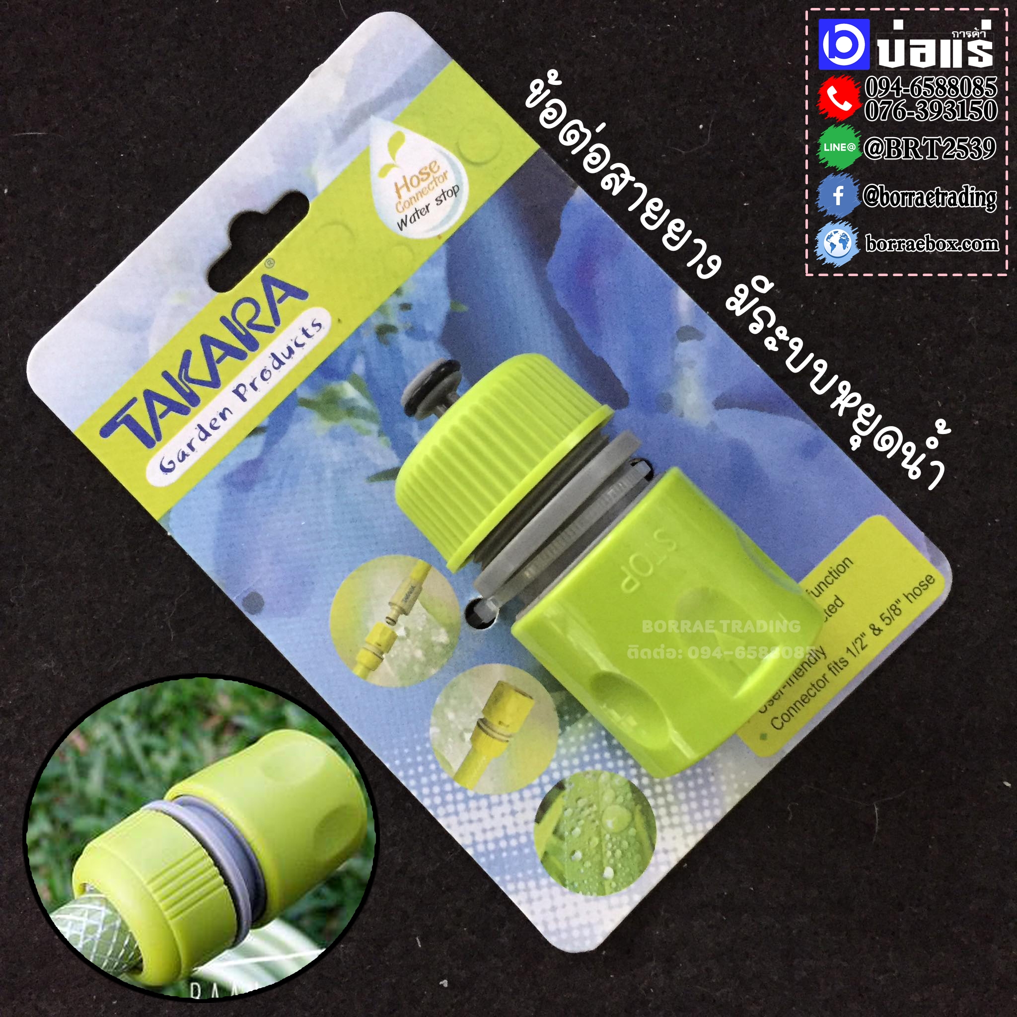 Takara ข้อต่อสวมสายยาง มีระบบหยุดน้ำ ใช้ได้กับสายยาง 1/2 นิ้ว และ 5/8 นิ้ว รุ่น DGT2104