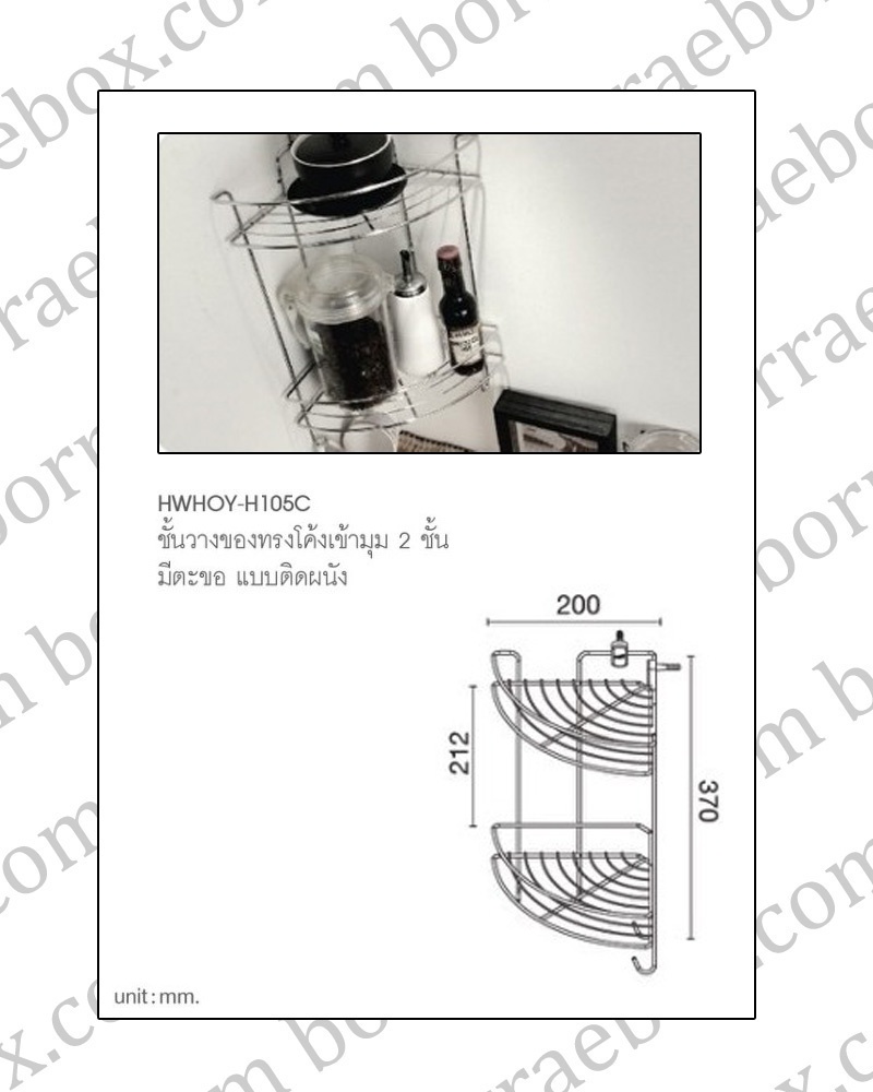 - ชั้นวางของทรงโค้ง เข้ามุม 2 ชั้น มีตะขอ