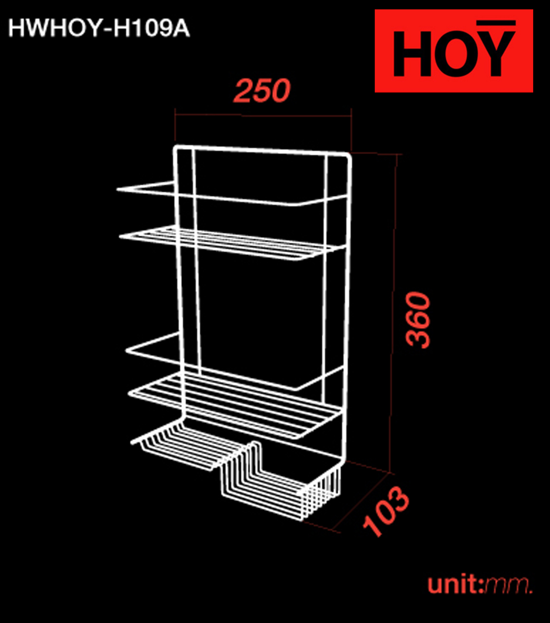 HOY ชั้นวางอเนกประสงค์แบบมีตะขอ 3 ชั้น สแตนเลส รุ่น HWHOY-H109A
