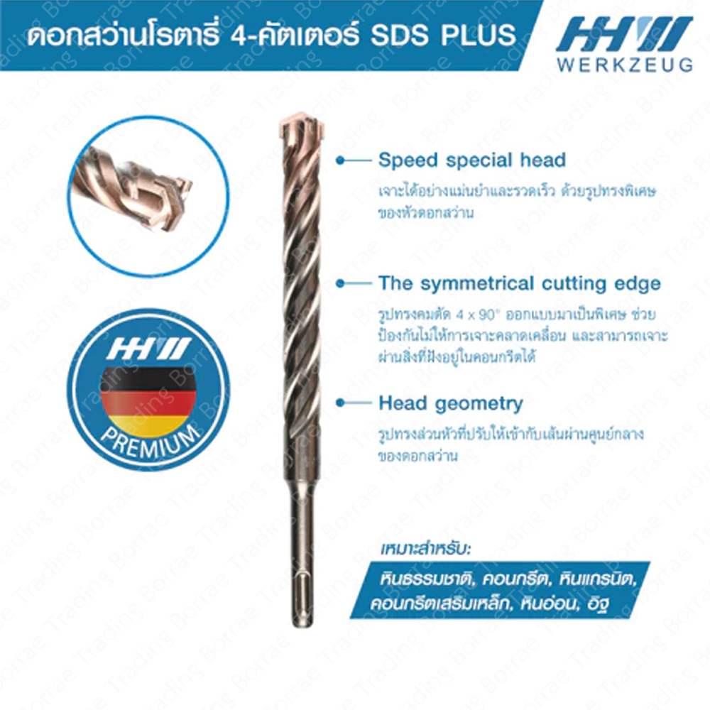 ดอกสว่านโรตารี่ เจาะปูน SDS plus 4-cutter HHW