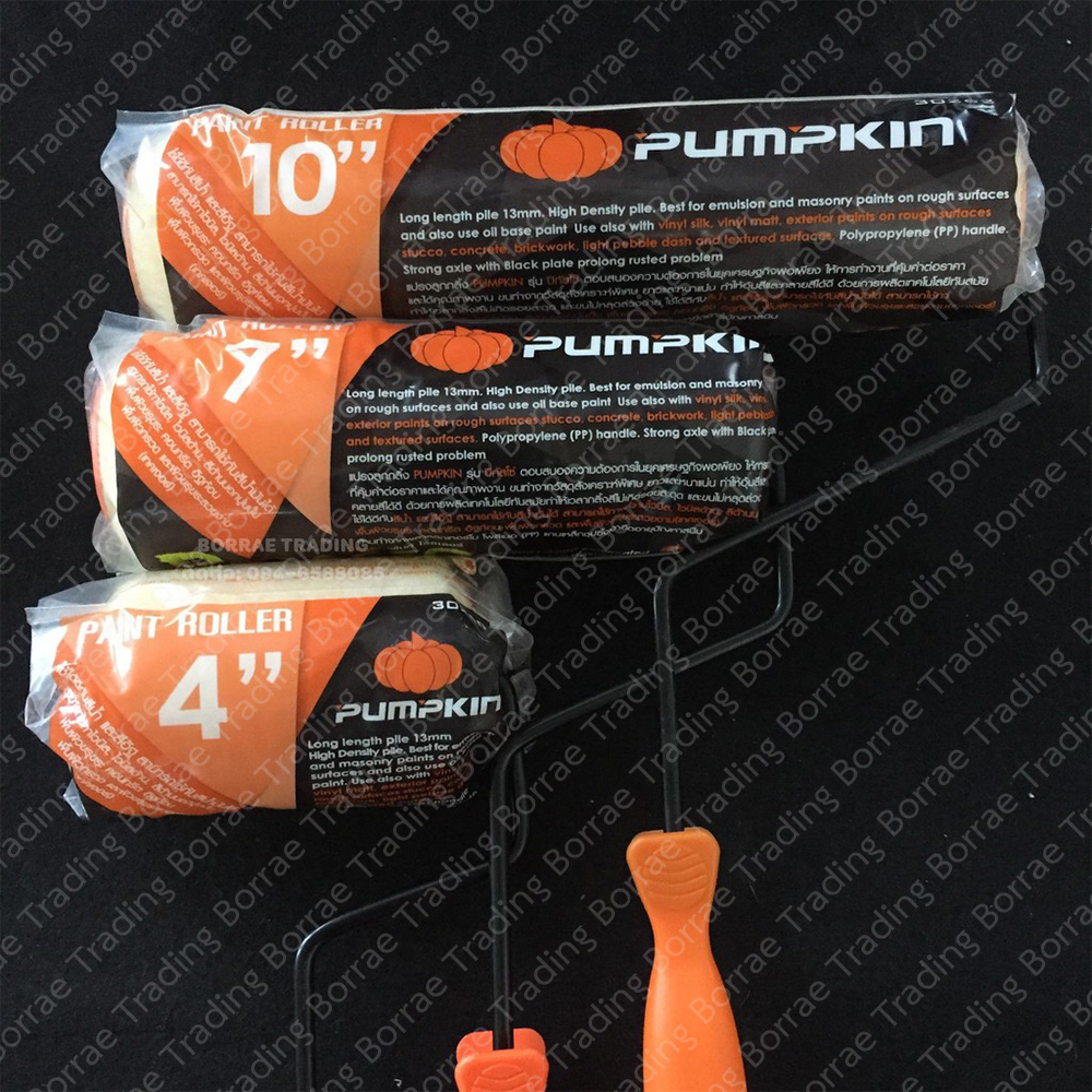 ลูกกลิ้งทาสีพร้อมด้าม ขนหนา เหมาะสำหรับใช้ทาสีน้ำ และสีน้ำมัน Pumpkin