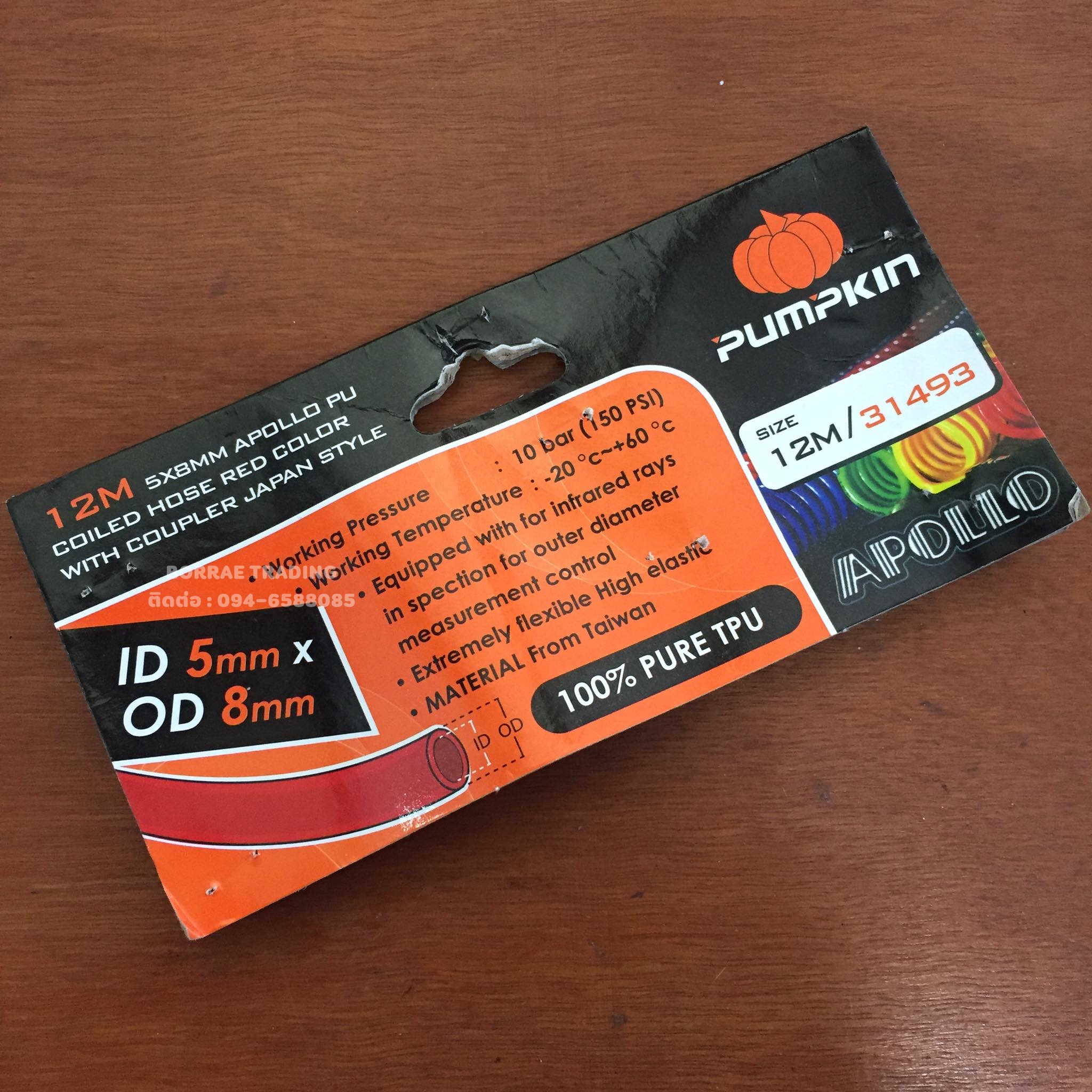 Pumpkin สายปั๊มลมขดสปริง 5×8 mm ยาว 12 เมตร พร้อมหัวคอปเปอร์ รุ่น APOLLO #31493
