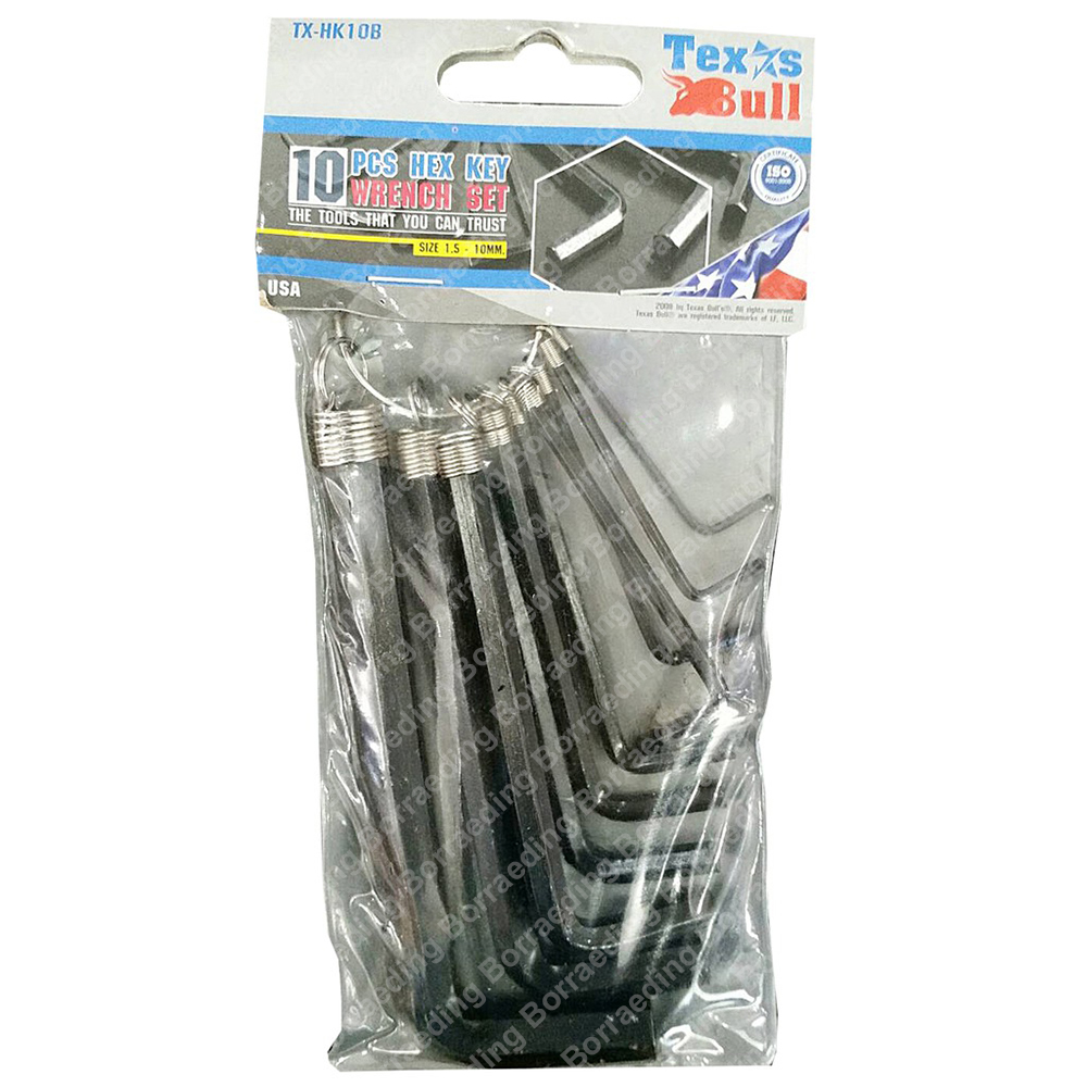 ประแจหกเหลี่ยมสั้น (10 ตัว/ชุด) Texas Bull รุ่น TX-HK10B