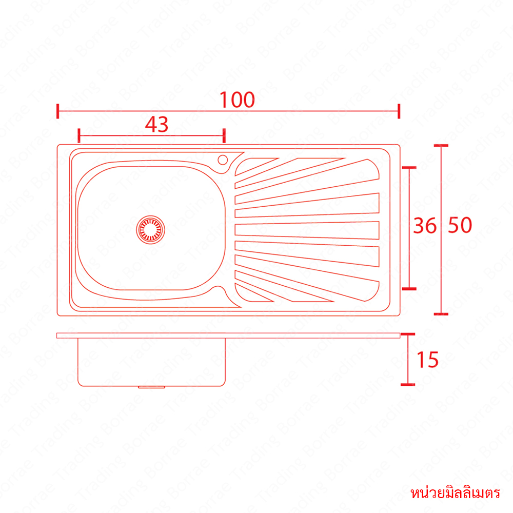 • ขนาดอ่างซิงค์ – กว้าง 50 cm. x ยาว 100 cm.