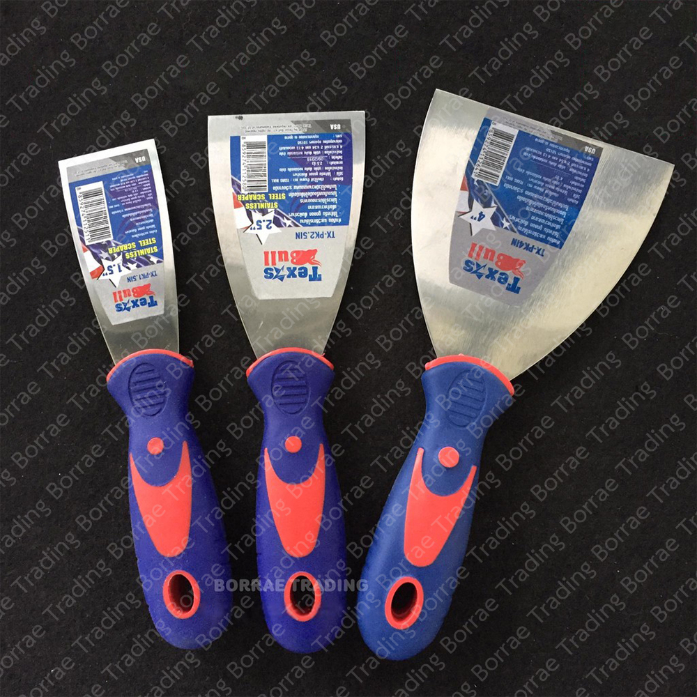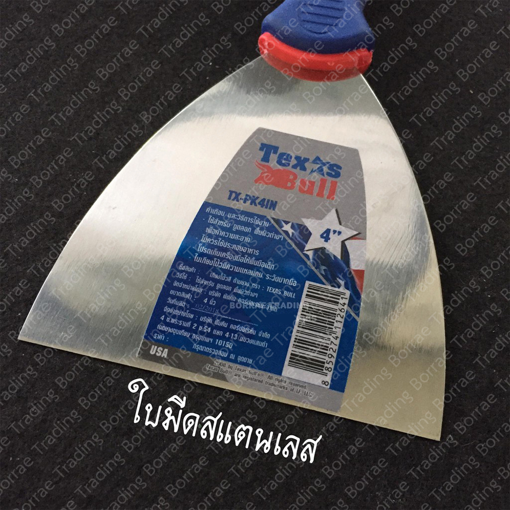 เกรียงโป๊วสแตนเลส ด้ามไฟเบอร์ อย่างดี (มีหลายขนาด) ยี่ห้อ TEXAS Bull